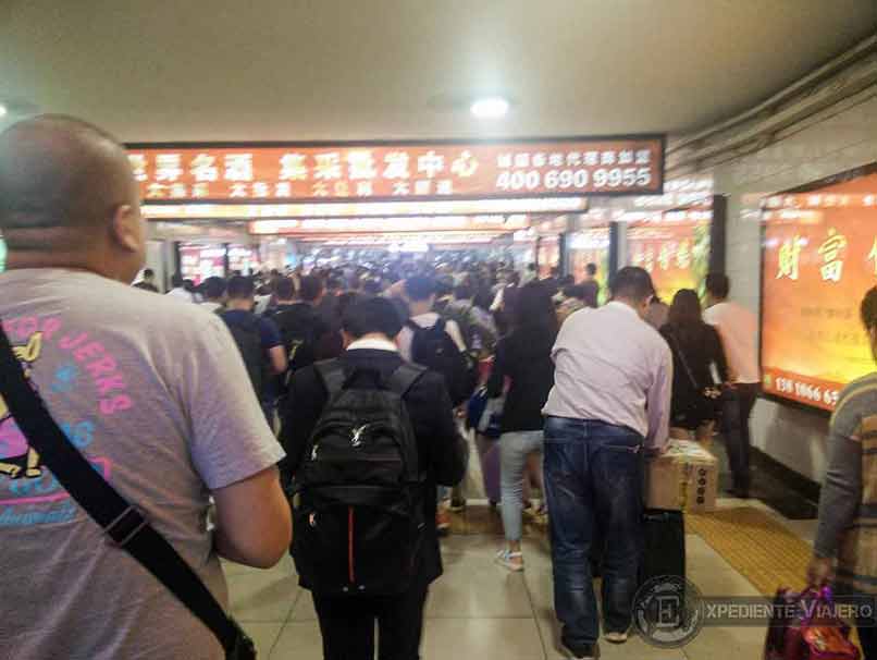 Llegamos a la estación de Pekin a las 22.35, y nada más salir del tren nos encontramos en medio de una gran «manada» de gente. Pero la cantidad de gente no se queda ahí, ya que nos sorprendemos mucho al ver toda la gente que hay fuera de la estación, en una gran explanada.
