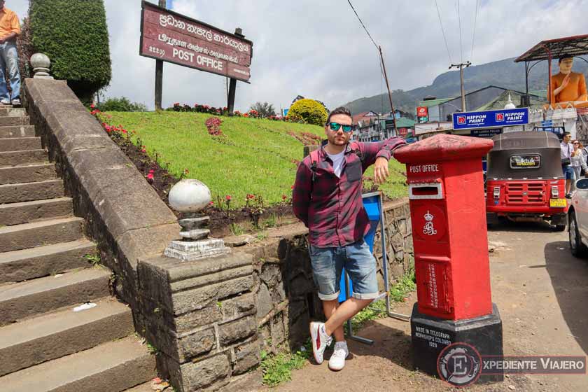La primera parada que hacemos en Nuwara Eliya es la oficina de correos, después de aparcar el tuk tuk justo frente a la puerta.