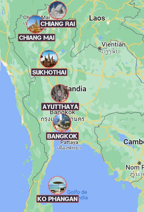 Mapa de nuestra ruta por Tailandia en 15 días
