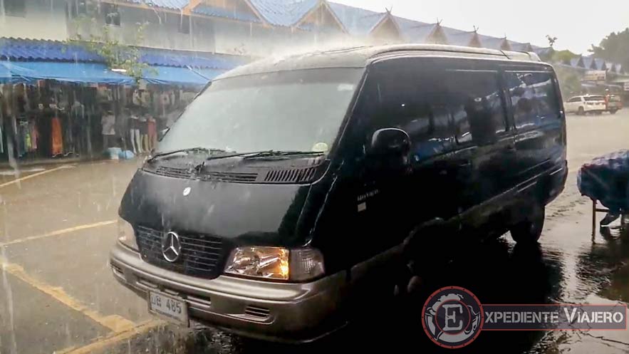 - Furgoneta de la excursión mientras cae «la del pulpo» en un momento de monzón