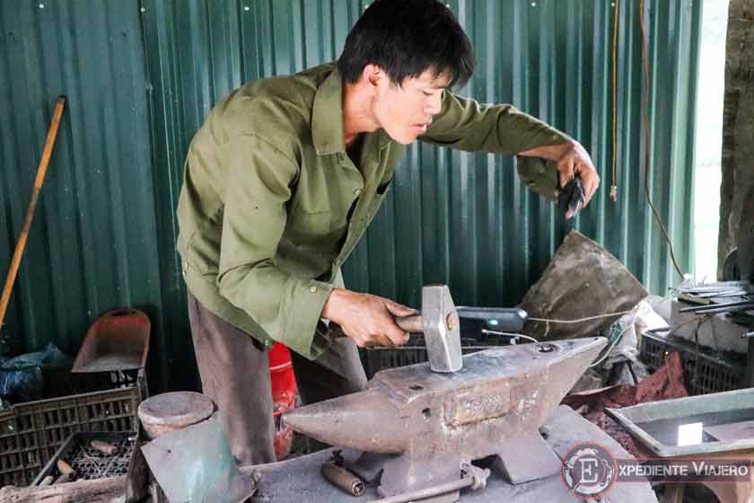 También le vemos que va buscando algo, hasta que se para en uno de los puestos que hay por la carretera, donde venden unos buenos cuchillacos que forjan allí mismo. La verdad es que es algo curioso de ver, además de que no es el típico paripé que montan para el turista, es un trabajo y puesto 100% real.