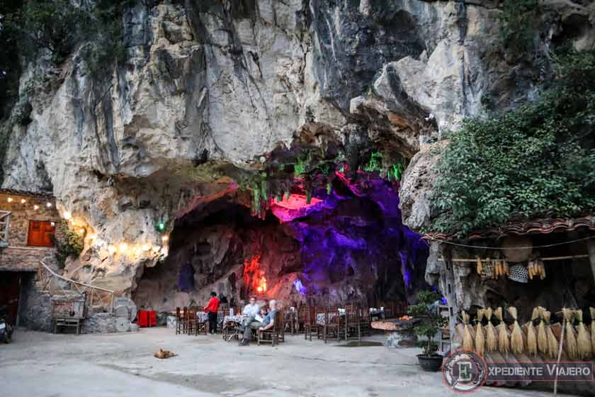 Además del entorno, que es una pasada, la habitación está muy bien, y tienen bar/restaurante con mesas en la boca de una cueva.