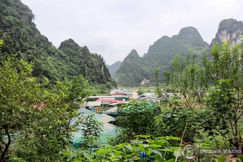 La salida de la cueva se hace desde otra abertura, que está más alta y te permite ver el bonito entorno en el que se encuentra la cueva, rodeada de otras verdes montañas. Justamente en la zona donde nos alojamos anoche, en el Yen Nhi Homestay, que se encuentra a pocos minutos a pie o en coche.