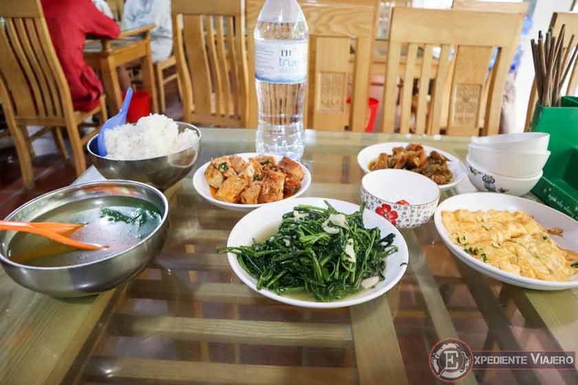 Como va siendo hora de comer, paramos en el restaurante Com Pho. Un restaurante de carretera con comida casera y fresca, que seguramente sea uno de los mejores del viaje.