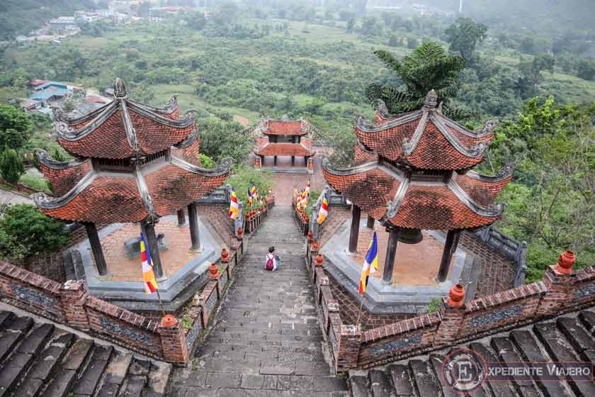 La subida hasta el templo no es muy larga, aunque sí es bastante empinada. Y para subir hay 2 maneras: a pie subiendo unas escaleras, o contratando unos motoristas que hay abajo (en nuestro caso nos encontramos con un hombre y una mujer) que te suben hasta arriba y te vuelven a bajar al terminar por 50.000 VND (1,8 €) por persona.