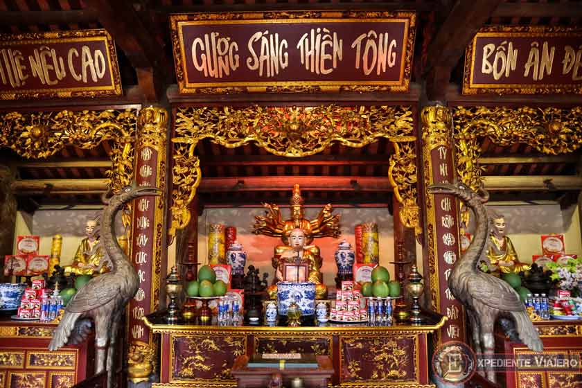 El templo en sí es pequeño pero muy bonito, con sus diferentes pagodas y jardines con esculturas. Pero lo más impresionante de todo son las vistas panorámicas que se tienen de todo Ban Gioc, incluyendo las cascadas.