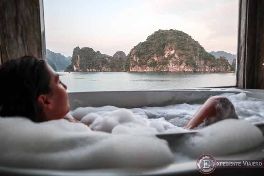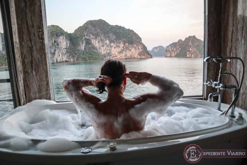 | Era Premium Halong Cruises | 295 € | 8,4 (aunque recién renovado) | Lan Ha Bay | ✅ | ✅ | ✅ | Crucero renovado recientemente y bañera en las habitaciones «baratas» |