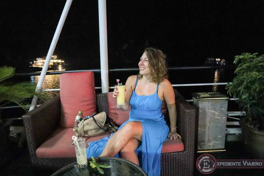 Después de la cena hay actividad de pesca de calamar, algo de lo que pasamos completamente, y nos vamos a la terraza de la cubierta donde nos tomaremos unos cocktails que están muy buenos 👌.