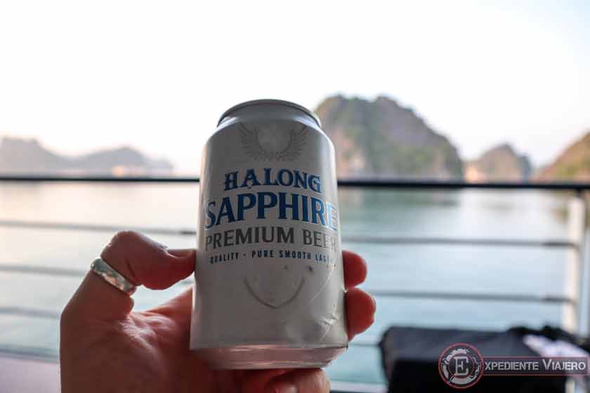Y como no, acompañamos la comida con cerveza y zumo, que habrá que pagar a parte. Ya que el precio de las bebidas no suele estar incluido en los cruceros de Halong Bay (cabrones… 😏).
