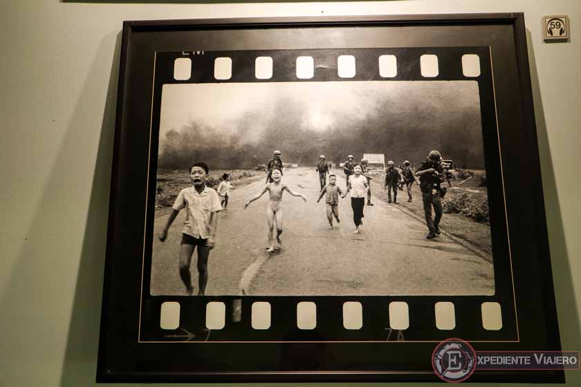 Además de poder ver antiguos helicópteros, aviones o tanques usados durante la guerra por los americanos, en el interior del museo hay unas cuantas plantas con restos de la guerra como armas o bombas, y lo más chungo de todo: fotografías que mientras vas subiendo de planta van empeorando cada vez más haciéndose más duras, mostrando escenas de la guerra, asesinatos, cadáveres de todo tipo (incluyendo bebés), y malformaciones posteriores de niños por culpa del puto Agente Naranja (gas usado como parte de la guerra química).