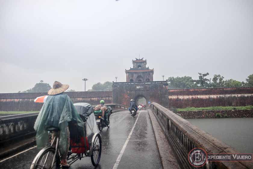 Comenzamos el día 7 de nuestra ruta por Vietnam, con casi todo el día por delante para conocer Hue! Pero nos despertamos con una mala noticia: nos está cayendo la del pulpo… 😅 Una buena lluvia que caerá durante casi toda la visita por la Ciudad Imperial. Pero bueno, nos hemos puesto las capuchas, hemos sacado de paseo un paraguas, y aunque no es lo más cómodo del mundo, tampoco nos va a estropear la visita!