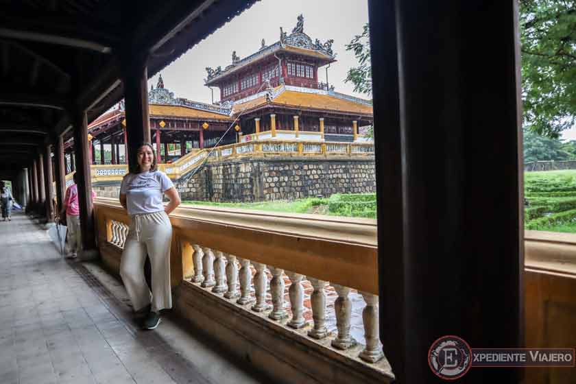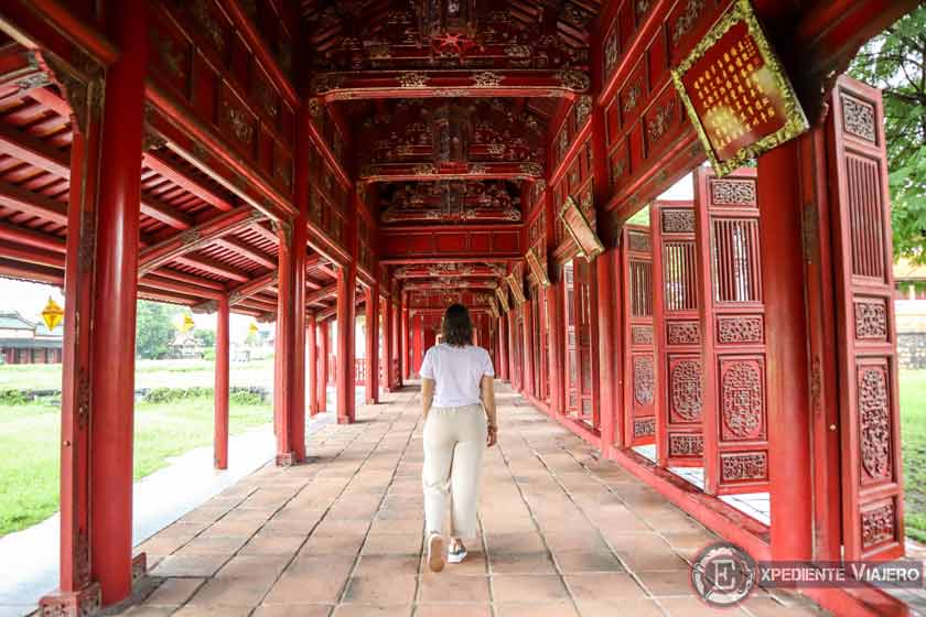 - La Galería de los Mandarines (Trường Lang) es uno de los sitios más fotogénicos de la Ciudad Imperial. Se trata de una larga galería roja de techos y columnas de madera. Encontrarla es fácil, al llegar a las Salas de los Mandarines desde el Palacio Thai Hoa gira a la izquierda o derecha por un corredor (mejor el de la derecha) y te encontrarás con esa galería que está en la foto principal del post).