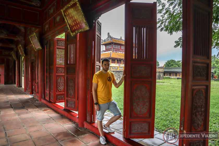 - El Palacio Thai Hoa (Palacio de la Armonía Suprema), una sala sostenida por 80 columnas rojas, donde se hacían ceremonias oficiales y eventos importantes. Este no lo encontramos totalmente en obras de restauración 😅👍.