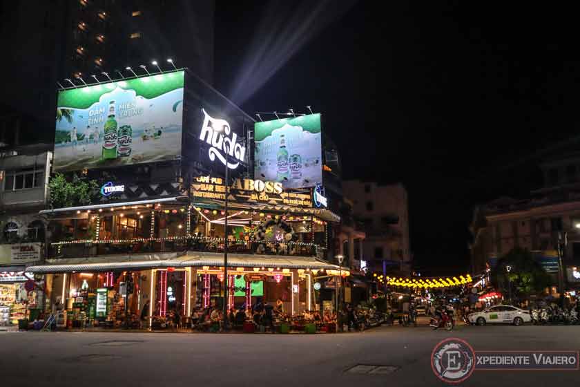 Después de la cena seguimos con el paseo, esta vez a la cercana Hue Night Walking Street. Una calle con ambiente, llena de bares con terrazas donde cenar o tomarse algo, que están petadas de gente local que seguramente tendrán que hablar a voces, porque tienen la música a tope 😅.