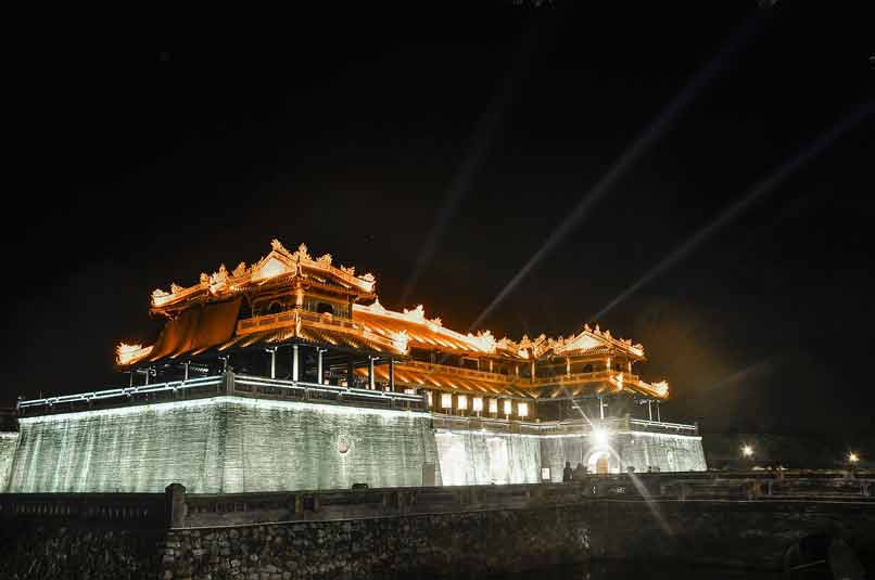 - La Puerta Ngo Mon, la puerta principal de la Ciudad Imperial. Desde aquí los emperadores pronunciaban decretos y realizaban ceremonias importantes.